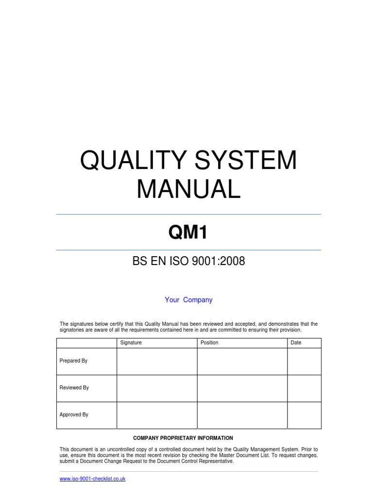 Quality Manual Template Example Iso 9000 Quality Management System